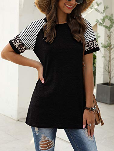 ❀ FEATURE:This Short Sleeve Shirt design with Sexy Leopard Print, Stripes, Color Blocks, Round Neck Combined with Stylish Short Sleeve Design, Cute, Women Crew Neck Color Block,Reflects the Elegance of Women.