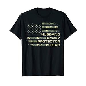 Mens Husband Daddy Protector Hero Shirt Fathers Day Flag Gift Tee T-Shirt