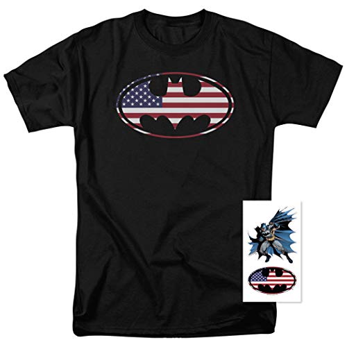 BATMAN PATRIOTIC LOGO USA FLAG T SHIRT – This unisex adult t shirt looks stylish on both men and women so it’s great for easy, everyday wear.